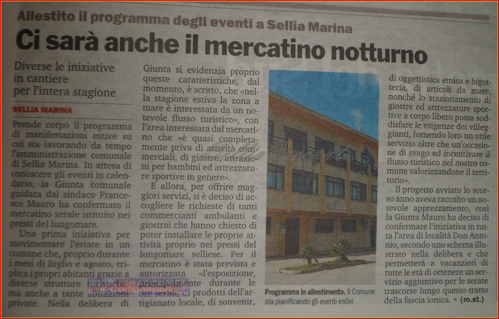 Tutte le notizie durante la settimana su: Sersale, Simeri Crichi, Zagarise, Albi, Magisano, Taverna, Catanzaro, Soveria, Fossato, Sorbo, Pentone, Sellia, Sellia Marina....... tratte dai vari giornali locali